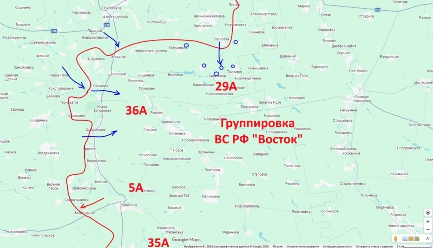 Вместе с этим российские подразделения из группировки "Восток" продолжают наступление по направлению к населённому пункту Верхняя Терса, где им практически удалось выйти на его окраины.