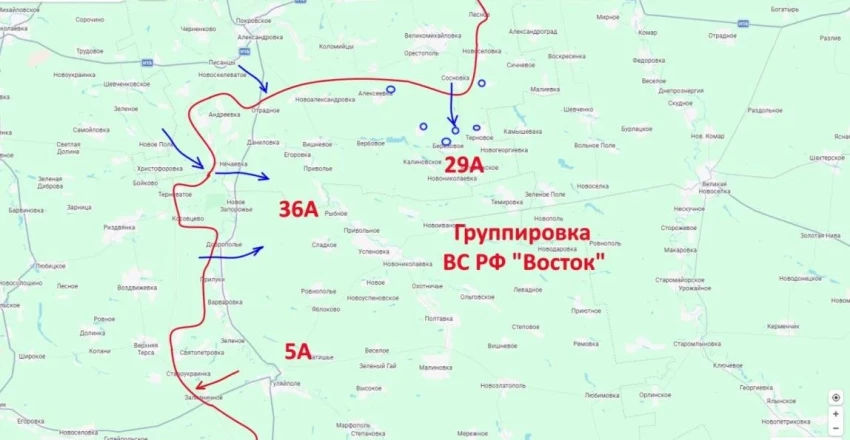В полосе ответственности группировки «Восток» продолжаются активные наступательные действия. По словам Подоляки, подразделения практически вышли на окраины Верхней Терсы и рассчитывают закрепиться на восточных рубежах населённого пункта.