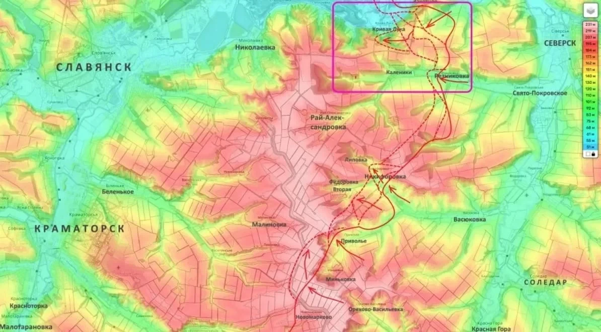 Главным оперативно-тактическим успехом на данном направлении стало взятие в кольцо украинского гарнизона в Кривой Луке. Под натиском ВС РФ противник выдавливается через высоты в сторону Калиновки.