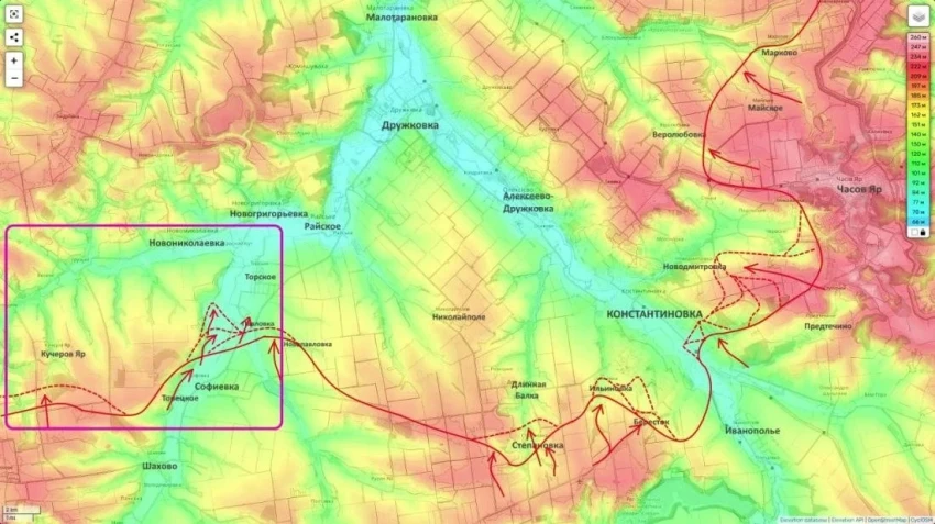 Сложной остаётся ситуация на Константиновском направлении. В самой Константиновке идут ожесточённые городские бои, особенно в южной и восточной частях города.
