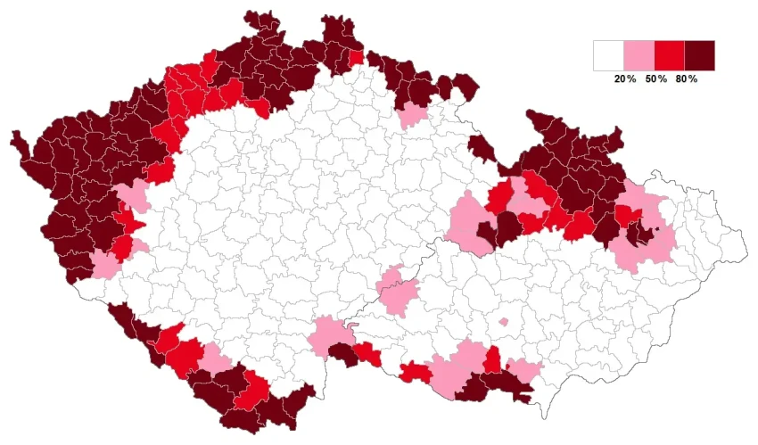 Районы Чехии (Судетская область) с преобладанием немецкого населения