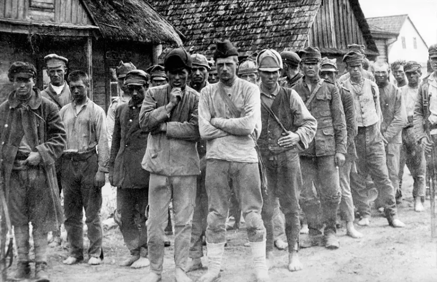 Группа пленных польских солдат после митинга. Архив РГАКФД: КП – 34472, 3/29903.