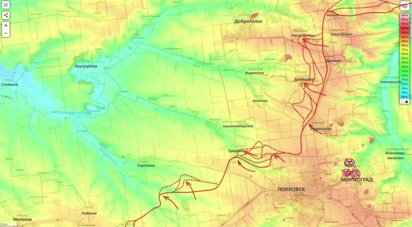 Параллельно расширяется зона контроля в приграничье: на Сумском направлении заняты новые позиции в лесных массивах по линии Корчаковка - Храповщина. Это даёт перспективу выхода к Иволжанскому и Киянице, а в дальнейшем - непосредственно к областному центру Сумы.