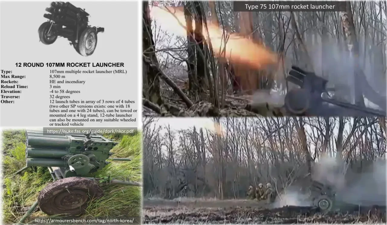 В контексте военно-технического сотрудничества между Россией и КНДР, начавшегося в 2023 году, поставки северокорейского вооружения включают реактивную систему залпового огня (РСЗО) Type-75 калибра 107 мм. Эта буксируемая система, идентичная по конструкции китайской Type-63, была замечена в использовании российскими силами в ходе специальной военной операции (СВО) в 2025 году. Type-75 представляет собой компактное и мобильное решение для огневой поддержки на ближней дистанции, способное наносить массированные удары по площадным целям. Её появление в российском арсенале подчёркивает тенденцию к диверсификации источников поставок в условиях дефицита боеприпасов и техники.