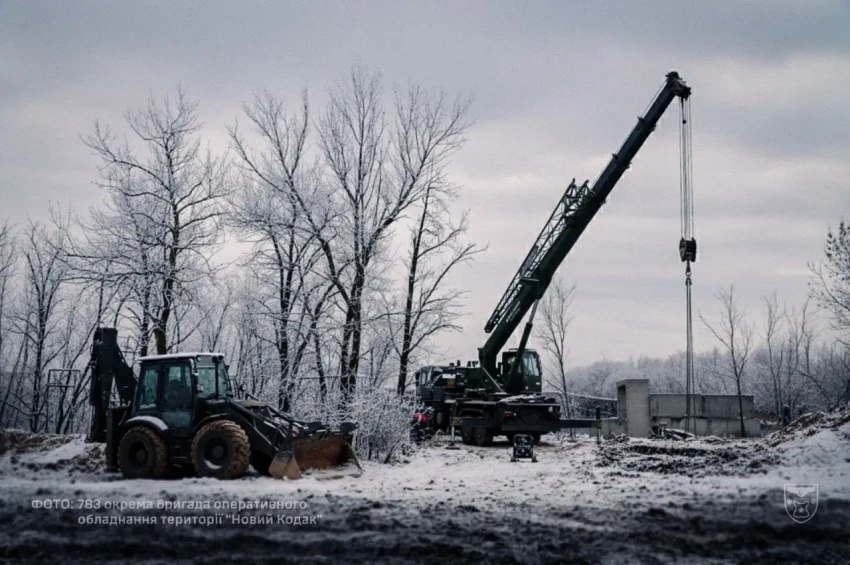 Судя по изображениям, ВСУ взялись за строительство укреплений основательно. Экскаваторы выкапывают глубокие траншеи, а автокраны укладывают в них что-то увесистое. Скорее всего, это металлические конструкции для укрепления.