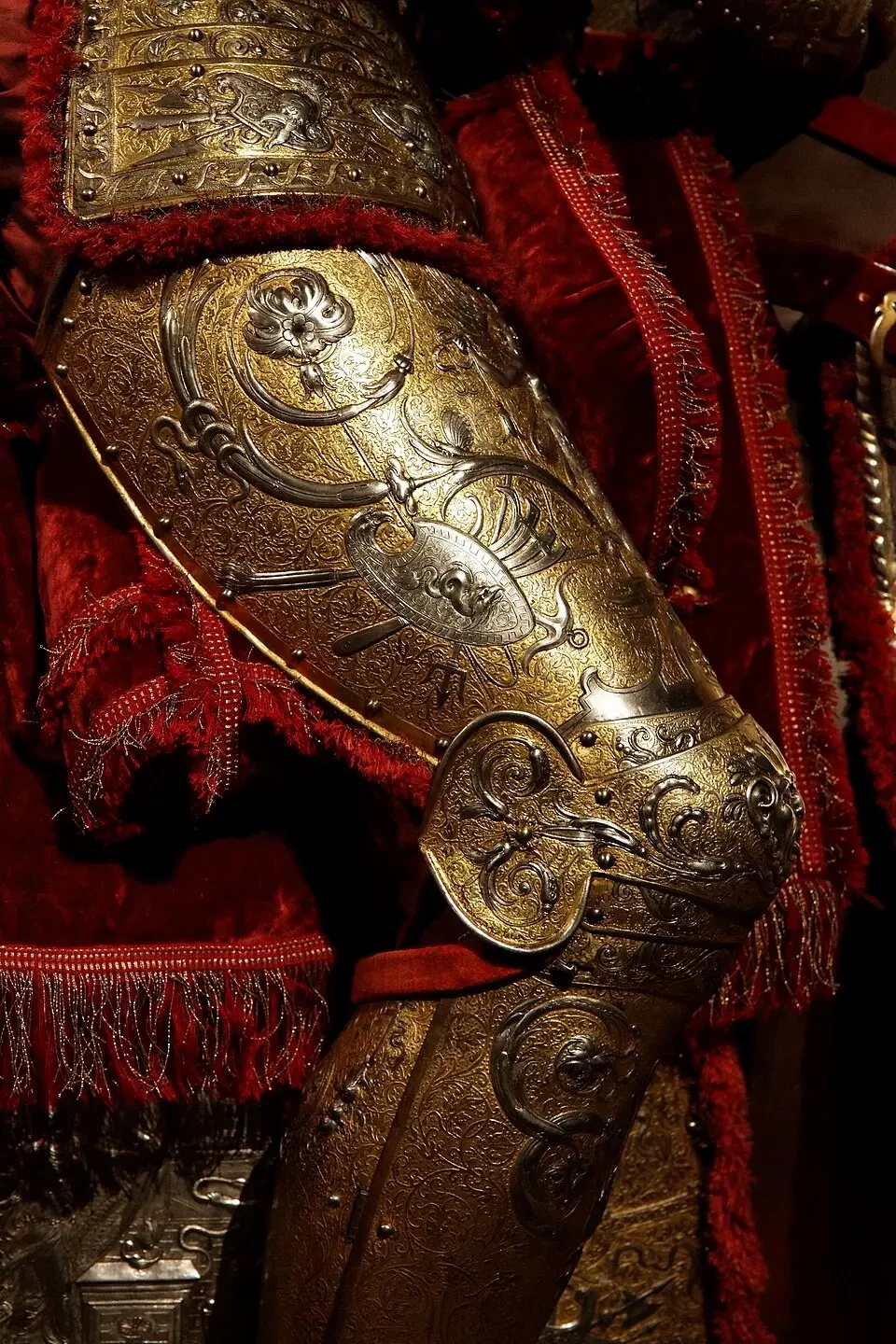 Самыми ранними доспехами, украшенными чеканкой, которые сохранились до нашего времени, — это конские латы императора Фридриха III, изготовленные в 1477 году. На их передней пластине можно видеть чеканное изображение полуфигуры ангела с распростертыми крыльями, а на задней – большого императорского орла по обеим его сторонам. Потом более чем тридцать лет ничего похожего не создавалось (или просто до нас не дошло), но вот уже со второго десятилетия XVI в. украшенных чеканкой доспехов становится все больше и больше: например, доспехи, хранящиеся в лондонском Тауэре, а также множество доспехов, созданных после 1530 года, находящихся в других музеях.