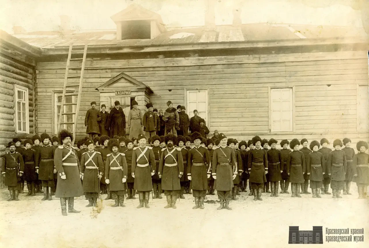 Почти два столетия енисейское казачество выполняло полицейские функции и практически не участвовало в войнах, которые вела Россия (истории про подвиги енисейцев в войне 1812 г. не более чем байки). С 1871 г. енисейские казаки в мирное время служили в Красноярской казачьей сотне, которая во время войны развёртывалась в Красноярский казачий дивизион, состоящий из трёх сотен, а также в трёх станичных дружинах. По положению от 4 апреля 1904 г. Красноярский казачий дивизион насчитывал 482 казака, 14 офицеров и чиновников. На первый взгляд, это очень мало для целого региона, но надо учитывать, что к началу XX в. казачество составляло лишь 0,8% от всего населения Енисейской губернии.