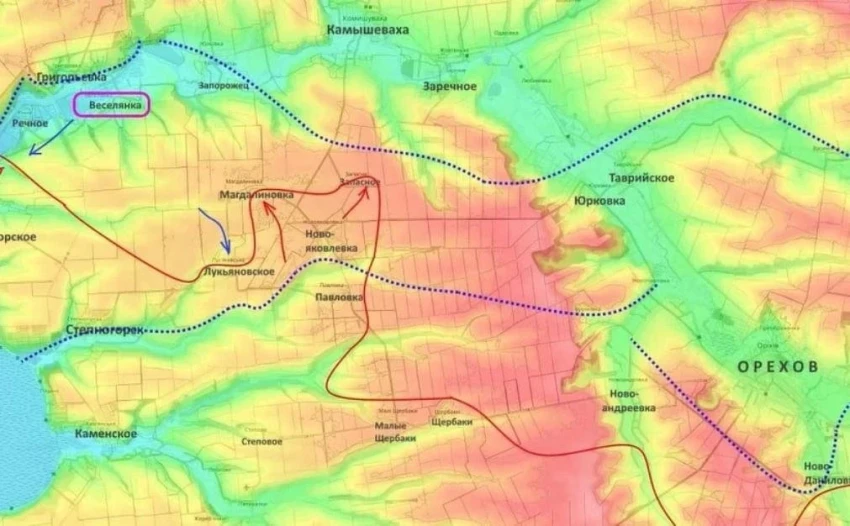 По его словам, продвижение осуществляется через ряд населённых пунктов - Каленики, Кривая Лука, Вторая Фёдоровка и Липовка. Эти позиции рассматриваются как важные промежуточные точки на пути к укреплённой линии обороны украинских сил.