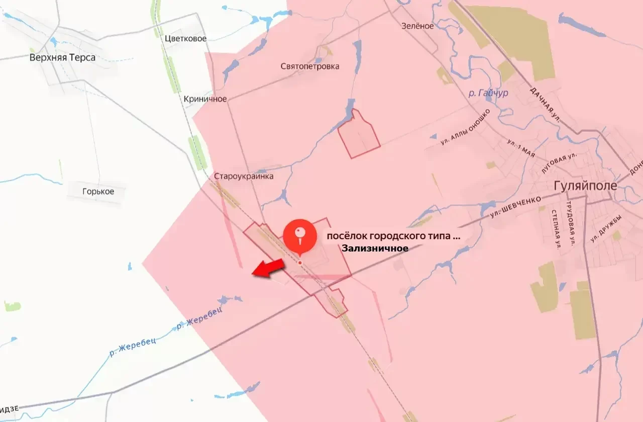 Российские войска стараются выровнять фронт в наступлении западнее села Зализничное (Железнодорожное) по линии Горькое-Мирное. Это позволит усилить восточный фланг в направлении Орехова, который продолжает оставаться под оккупацией ВСУ, сообщает "Военное обозрение".