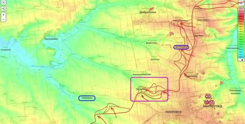 Повышенное внимание сегодня приковано к Покровскому направлению, где российские штурмовые подразделения демонстрируют уверенное движение вперед. По данным Подоляки, бойцы ВС РФ зачистили большую часть населённого пункта Гришино.