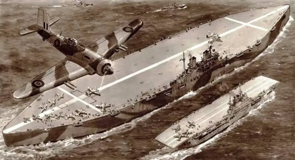 Сравнительные размеры «Хаббакука» и британского авианосца “Indefatigable”