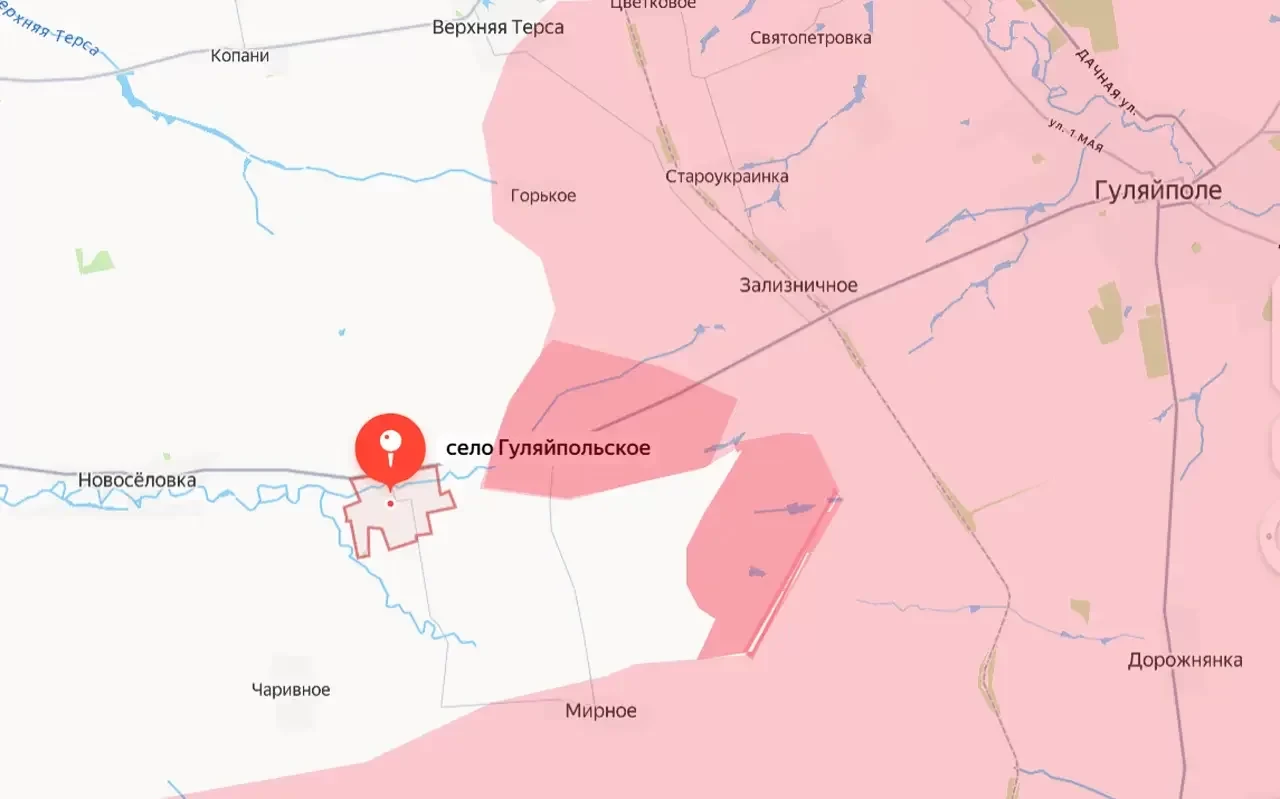 Теперь поступают сведения о продвижении на глубину до 3 км от тех позиций, которые ранее были заняты российскими войсками западнее указанного выше села. В результате нового продвижения ВС РФ достигли восточных окраин села Гуляйпольское, расположенного по обоим берегам реки Жеребец, информирует "Военное обозрение".
