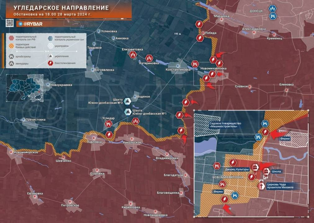 Новая карта боевых действий на Украине сегодняшний день, 29 марта 2024 года