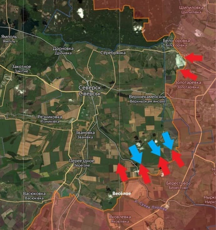 На Артёмовском направлении ВС РФ продолжают наступление и подошли к окраинам Часов Яра, активно используя средства дальнего поражения. Подразделения армии России закрепляются на восточных окраинах, преодолевая оборонительные рубежи ВСУ.