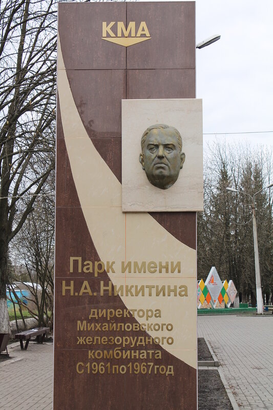 Горельеф Никитина (на фото выше), первого руководителя комбината установили в 2012 году при входе в городской парк культуры и отдыха, в честь которого и назван сам парк. Это была последняя скульптурная работа Валерия Иванникова, подаренная городу.