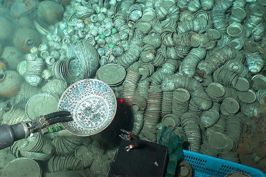 После двух лет раскопок более 900 артефактов были найдены на месте двух кораблекрушений времен династии Мин (1368-1644), обнаруженных в южной островной провинции Китая Хайнань. Раскопки затонувших глубоководных кораблей потребовали новаторских технологий, в том числе 3D-лазерных сканеров и камер высокого разрешения для картирования мест крушения и объединения полных панорамных изображений мест затонувших кораблей с использованием методов фотограмметрии и современных погружных устройств для откачки и продувки бурового раствора, чтобы заняться настоящими раскопками.