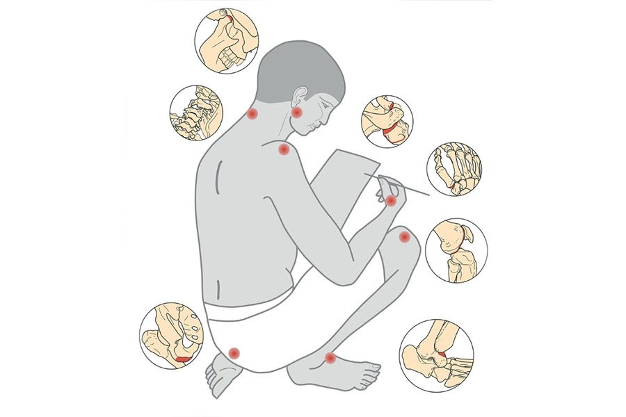 Они выявили дегенеративные изменения суставов, которые чаще встречались среди писцов по сравнению с мужчинами других профессий. Они находились в суставах, соединяющих нижнюю челюсть с черепом, правой ключице, верхней части правой плечевой кости (там, где она соединяется с плечом), первой пястной кости большого пальца правой руки, нижней части бедра (там, где она соединяется с коленом) и по всему позвоночнику, но особенно вверху.