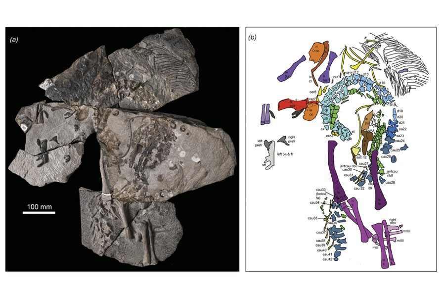 «Наша первая реакция была: что это такое?» — сказала соавтор доктор Николь Кляйн из Боннского университета. «Мы ожидали найти что-то вроде морских рептилий. Мы не могли понять, как наземное животное могло оказаться так далеко в море среди ихтиозавров и аммонитов. Только увидев почти полностью подготовленный образец лично, я убедилась, что это действительно наземное животное».