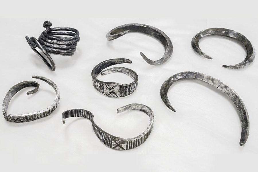 Одно спиральное кольцо относится к типу, который изначально пришел из России или Украины, и который с тех пор копировался в Скандинавии. Три полосообразных штампованных кольца относятся к южноскандинавскому типу, который вдохновил на создание браслетов в Ирландии, где они стали очень распространены. Три гладких браслета редки, но известны из Скандинавии и Англии.