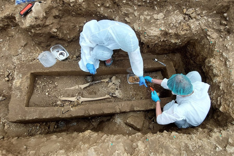 В ходе раскопок на этрусском городище Бизенцио в центральной Италии был обнаружен редкий запечатанный каменный саркофаг с богатой погребальной утварью и неповрежденным скелетом, датируемый VII или VI в. до н. э.