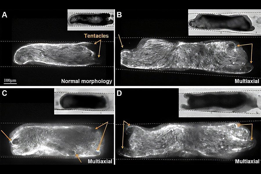 Группа обнаружила, что существует сильное предпочтение осей тела и актомиозинового волокна выстраиваться в соответствии с «легкой осью» канала, с одной головой и одной ногой вдоль оси канала. Но развились различные планы тела, если исходная ткань была перпендикулярна оси канала.