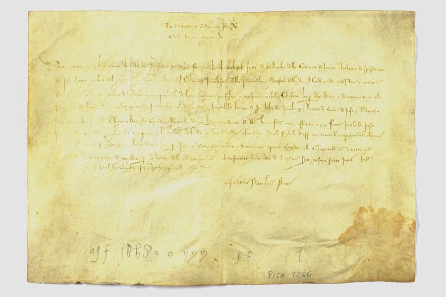 Документ, хранящийся на факультете гуманитарных наук Геттингенского университета, оказался подделкой XVIII века. Документ якобы датируется 1266 годом, но в нем упоминается церковь в Пизе, которая была построена позднее. Это открытие стало результатом исследования доктора Бориса Гюбеле, историка Геттингенского университета, работающего с итальянскими исследователями.