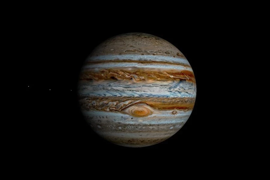 Юпитер — самая большая планета в Солнечной системе, достаточно большая, чтобы поглотить все планеты и оставить немного места в запасе. Он состоит в основном из водорода и гелия и лишен твердой поверхности. Из всех планет Юпитер имеет мощное магнитное поле и сильное гравитационное поле. Его гравитационное поле настолько мощное, что на протяжении многих лет оно притягивало и даже уничтожало кометы, такие как комета Шумейкера-Леви 9 в 1994 году. Из всех особенностей, видимых в атмосфере планеты, гигантский шторм, известный как Большое Красное Пятно, является, безусловно, самым заметным.