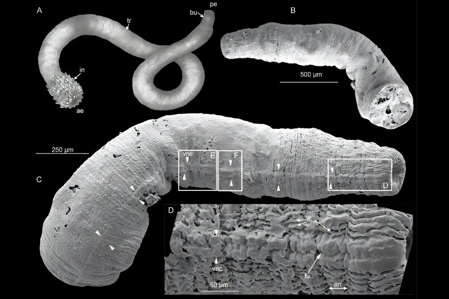 «Эти структуры очень похожи на брюшные нервные тяжи, которые можно увидеть у современных приапулид», — пояснили Дэн Ван и Жан Ванье. Их анализ показывает, что эти окаменелости сохраняют отпечатки отдельных брюшных нервных тяжей, проливая свет на вероятное предковое состояние скалидофор.