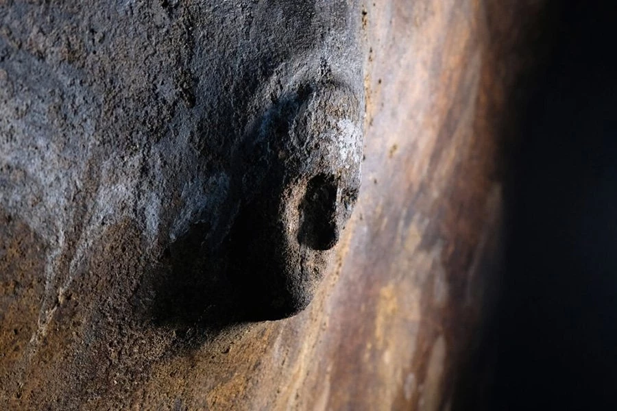 Человеческое лицо, вырезанное из гидравлического раствора внутри цистерны, было одним из самых интересных открытий. Происхождение маски неясно из-за отсутствия различимых черт, что приводит к различным интерпретациям. Археологи отмечают сходство с резьбой, найденной в ливийских святилищах, что указывает на потенциальные местные связи или влияния. Возможно, что владелец дома или те, кто участвовал в его создании, были ливийцами по происхождению, но это остается предположением.