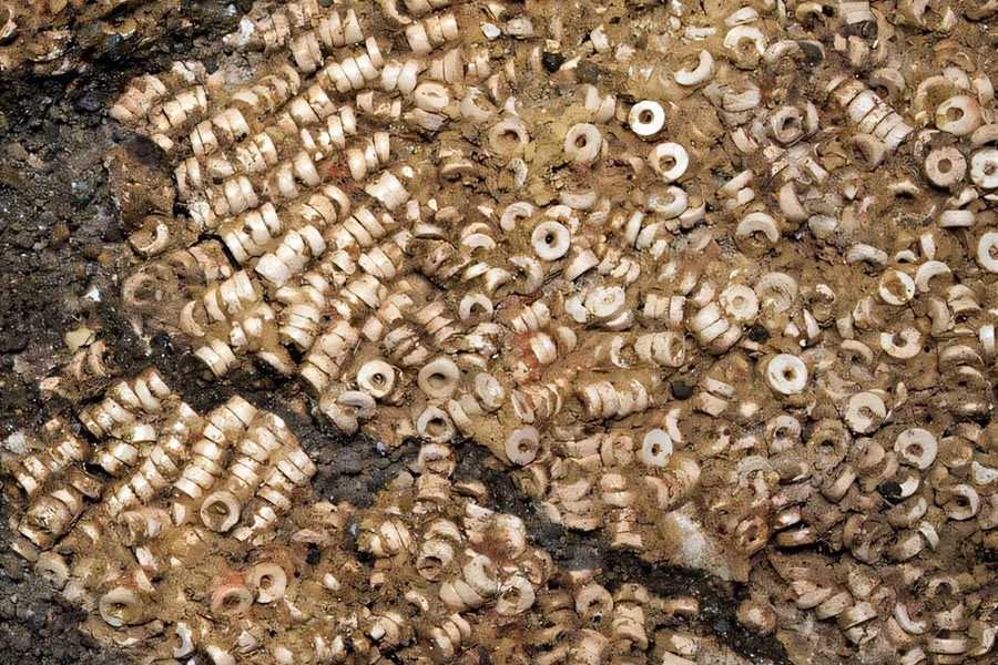 В ходе новых раскопок их было обнаружено гораздо больше. Удивительно их огромное количество — команда подсчитала, что в гробнице находится более 270 000 бусин. Каждая была сделана путем обработки одной ракушки и просверливания отверстия в ее центре. Огромное количество представляет собой самую большую коллекцию бусин из одного захоронения, когда-либо найденную в каком-либо захоронении.