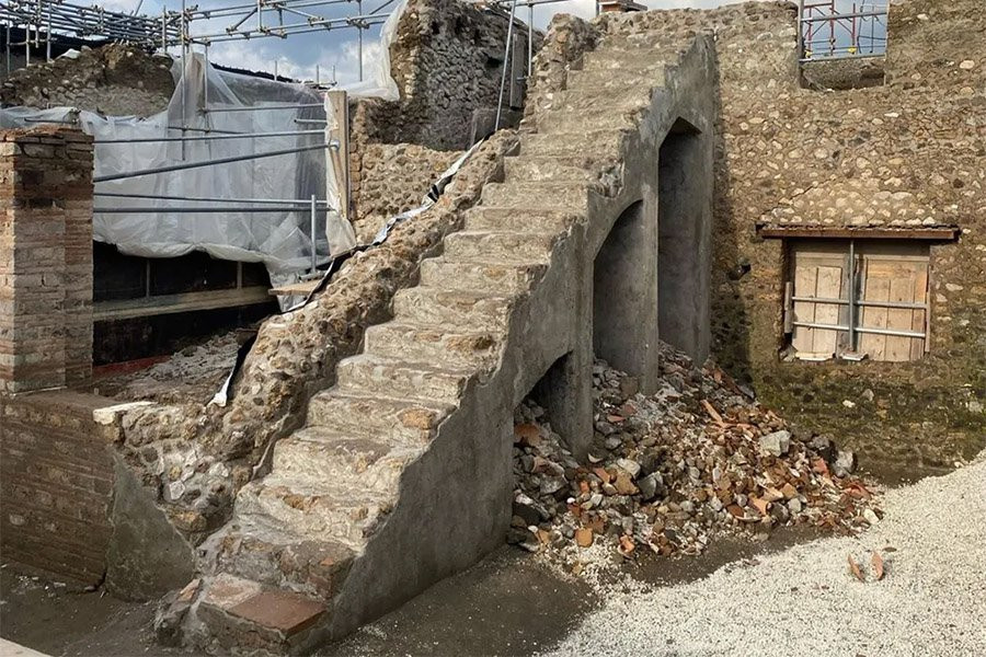 Во время извержения Везувия в 79 году нашей эры рабочие, вероятно, занимались ремонтом дома. Археологи нашли груды извести, камней, керамики, плитки, кирпича и инструментов, застывших во времени под слоями вулканического пепла.