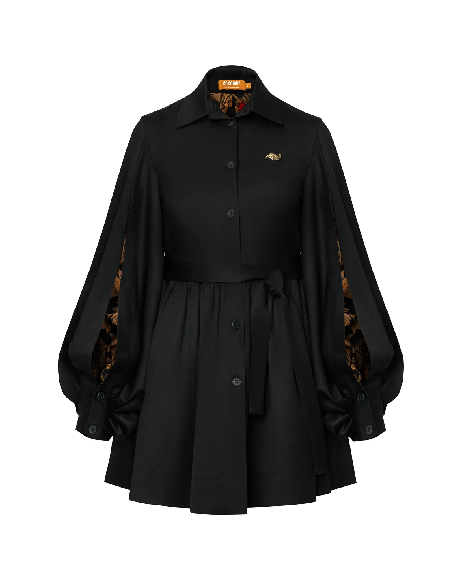 Чупшева выступила в Совете Федерации в чёрном платье за 69 тысяч рублей с вырезами на рукавах и хохломской росписью с их внутренней стороны, а потом в нём же посетила премию "Попутчики".