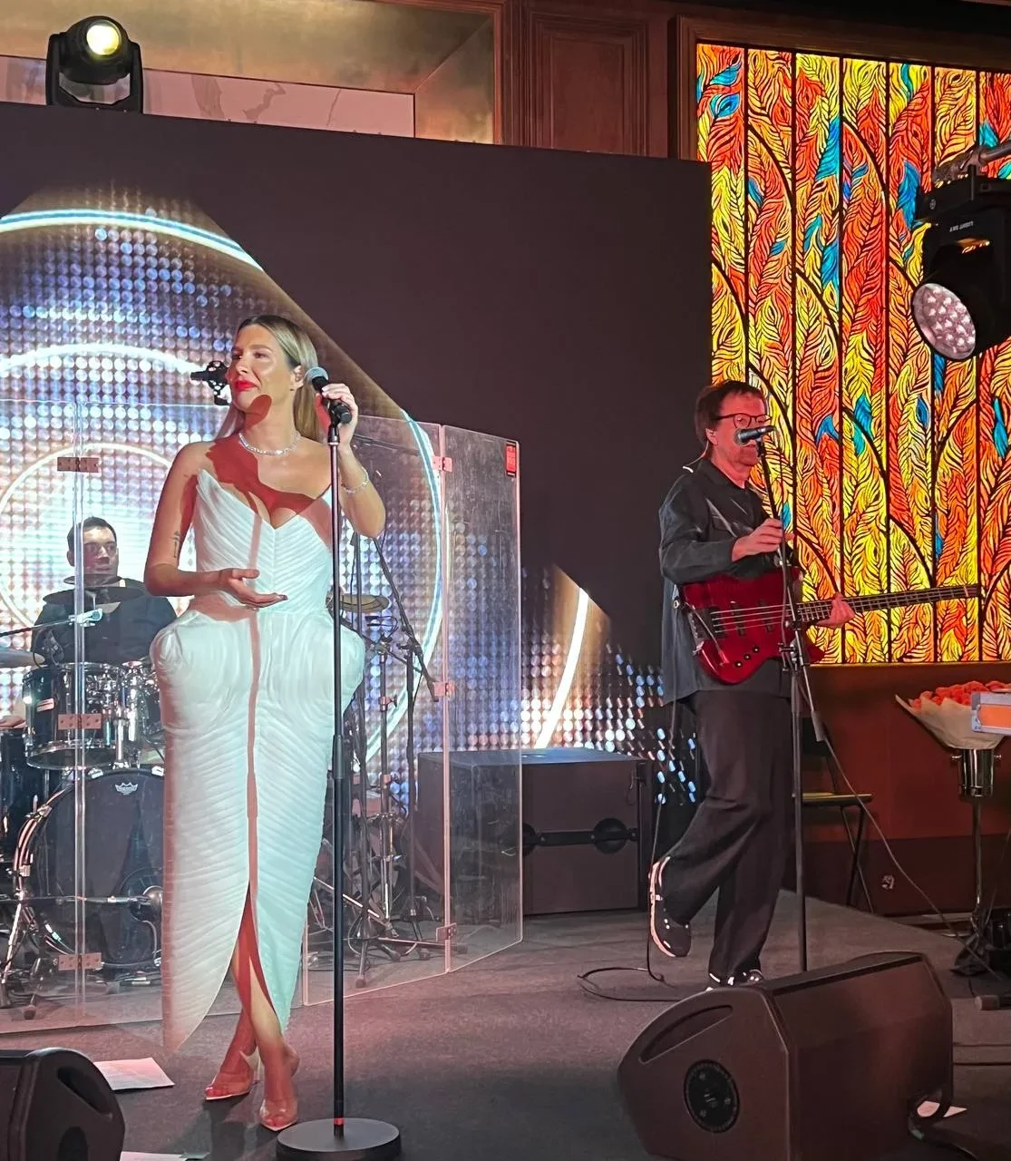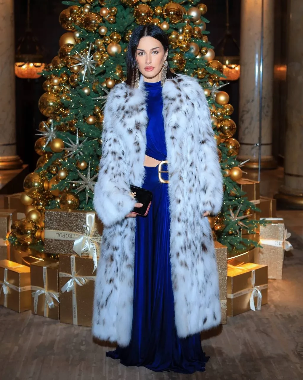 Тина Канделаки пришла в синем платье Loewe и пятнистой шубе. Яна Рудковская позировала фотографам в бархатном платье и с сумкой Dior, а на сцене для гостей выступила Кети Топурия.