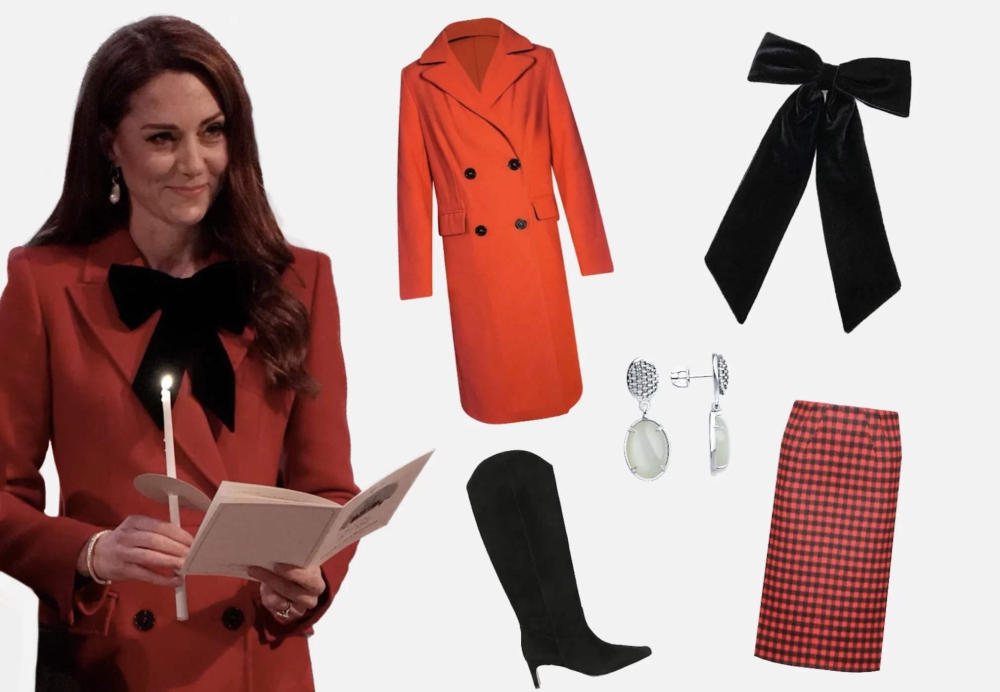 Красное пальто, чёрный бант и юбка в клетку: как повторить образ Кейт Миддлтон