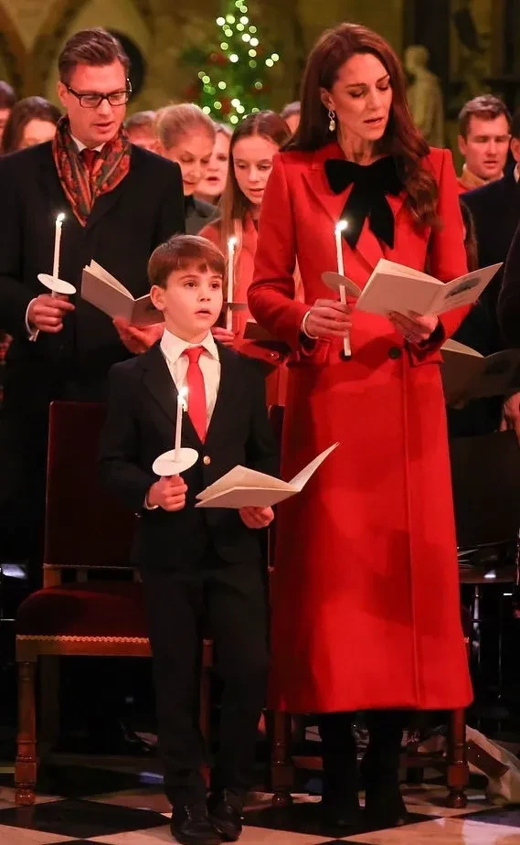 Одним из самых обсуждаемых образов на прошедшей неделе стало появление Кейт Миддлтон на рождественском концерте в Вестминстерском аббатстве. Герцогиня вышла в свет в красном пальто своего любимого бренда Alexander McQueen, в котором она уже трижды появлялась на публике — в 2020 и 2022 годах. Аналогичное можно приобрести на ресейле за 2 990 фунтов (около 390 тысяч рублей). В этот раз будущая королева Великобритании дополнила пальто чёрным бантом и надела с юбкой в клетку Emilia Wickstead и замшевыми сапогами Polo Ralph Lauren.