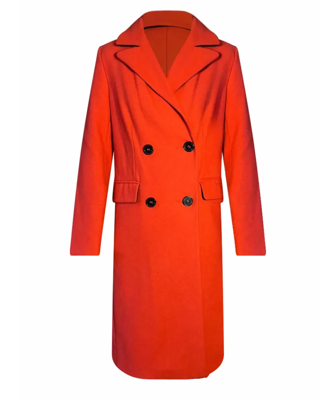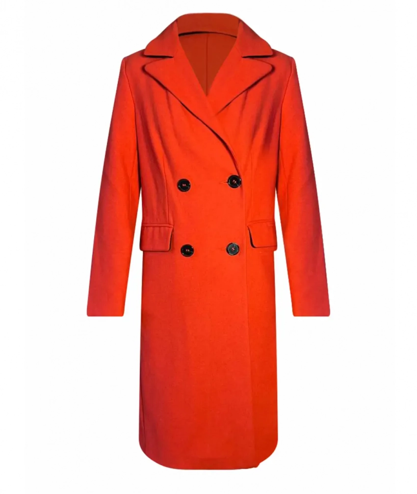 Пальто как у Кейт приталенного силуэта и с чёрными пуговицами, помимо Alexander McQueen, можно найти далеко не у каждого бренда одежды. В нынешних реалиях проще приобрести похожее на популярных ресейл-платформах. Красное пальто длины миди бренда Topshop нашлось на Oskelly.