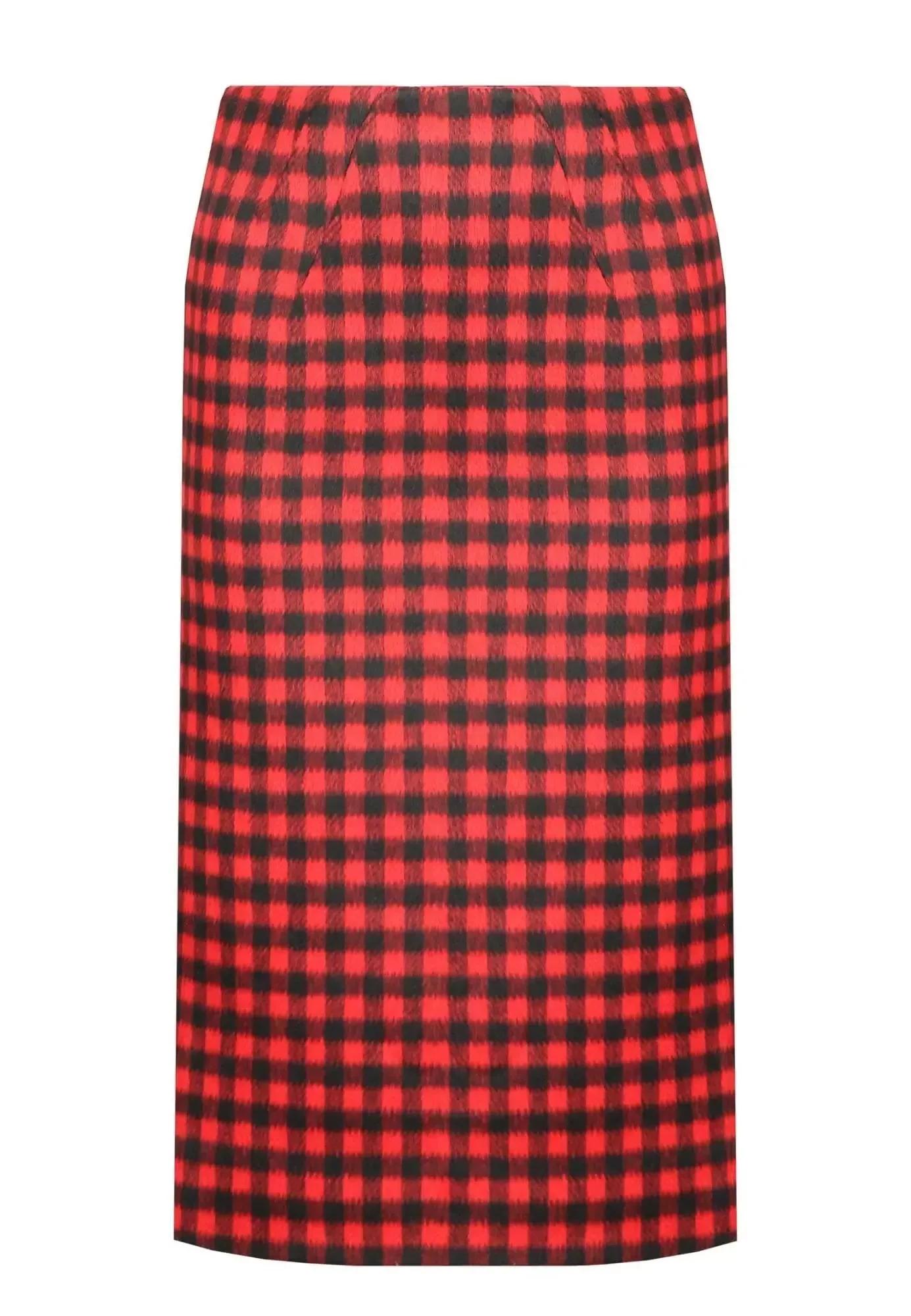Красная юбка в клетку Emilia Wickstead — ещё одна вещь в образе герцогини, в которой она уже выходила в свет. Впервые Кейт появилась в ней в 2018 году, а спустя два года ещё раз надевала с тем же красным пальто Alexander McQueen. Для создания образа в стиле Кейт подойдёт юбка длины миди в красную клетку, например, как у бренда N21.