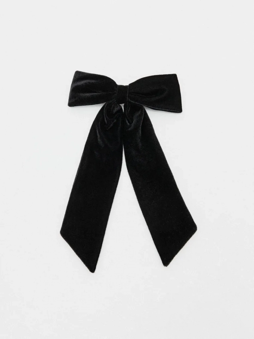 Массивный чёрный бант, которым Кейт украсила пальто, может заменить бархатная заколка для волос Sela. Достаточно закрепить её на верхней одежде — и образ сразу станет более нарядным.