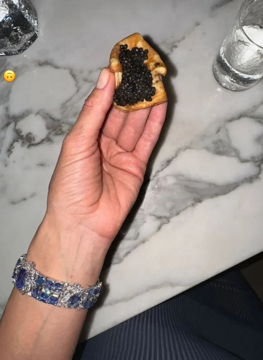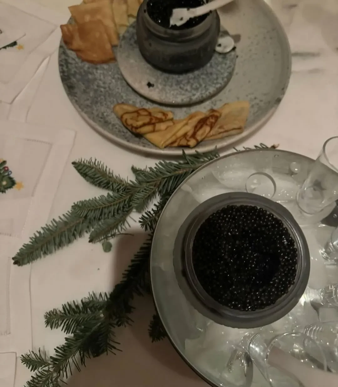 Блины с чёрной икрой, конфеты "Алёнка" и винегрет: Ирина Шейк устроила рождественскую вечеринку в русском стиле