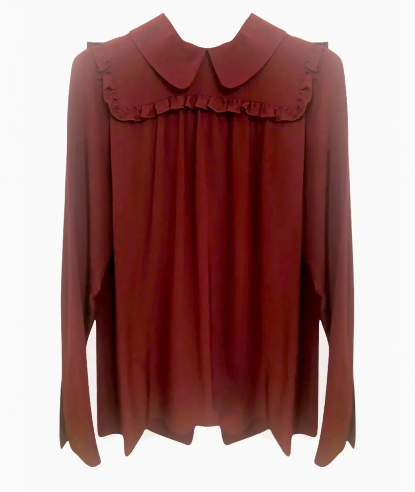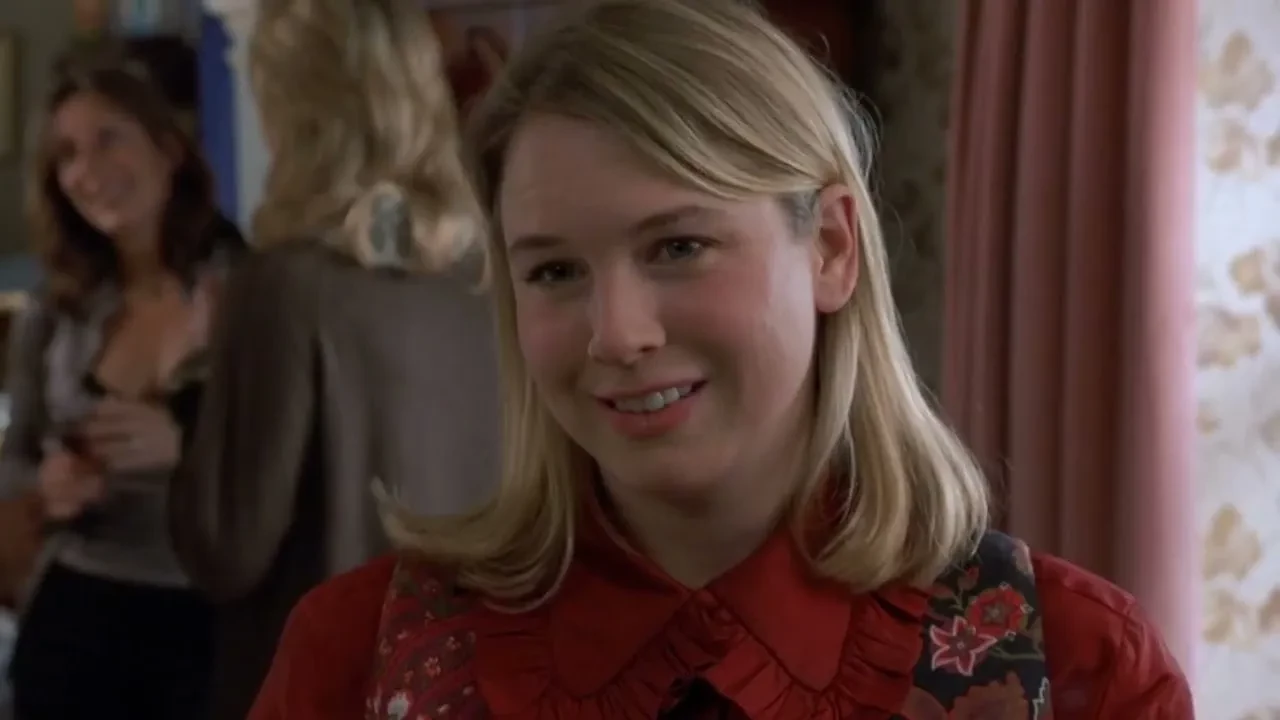 Рене Зеллвегер в фильме "Дневник Бриджит Джонс" (2001 год)/Фото: кадр из фильма/Universal PicturesРене Зеллвегер и Колин Фёрт в фильме "Дневник Бриджит Джонс" (2001 год)/Фото: кадр из фильма/Universal PicturesСамая популярная роль Рене Зеллвегер, которая не нуждается в представлении. О приключениях Бриджит Джонс и её юбки, которая, как говорил персонаж Хью Гранта, "заболела и не пришла на работу", следили все. На счету Бриджит, спустя три части фильма, множество ярких образов, но одним из самых популярных остаётся выбранный матерью лук с рождественского семейного обеда, после которого Джонс решила изменить свою жизнь. Чтобы его повторить, понадобятся бордовая блуза с рюшами, гобеленовый жилет, небрежная укладка и бокал "Мимозы".Блуза Miu Miu