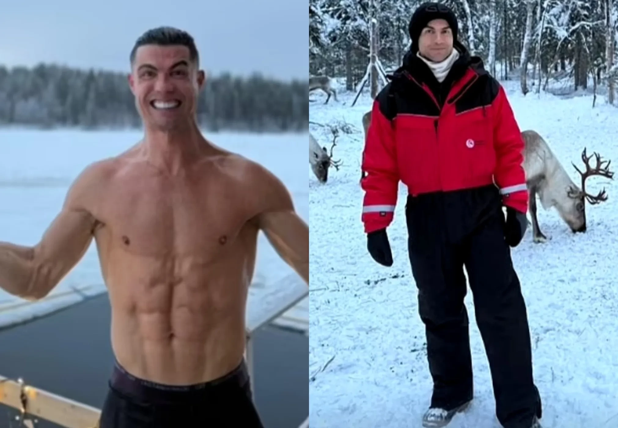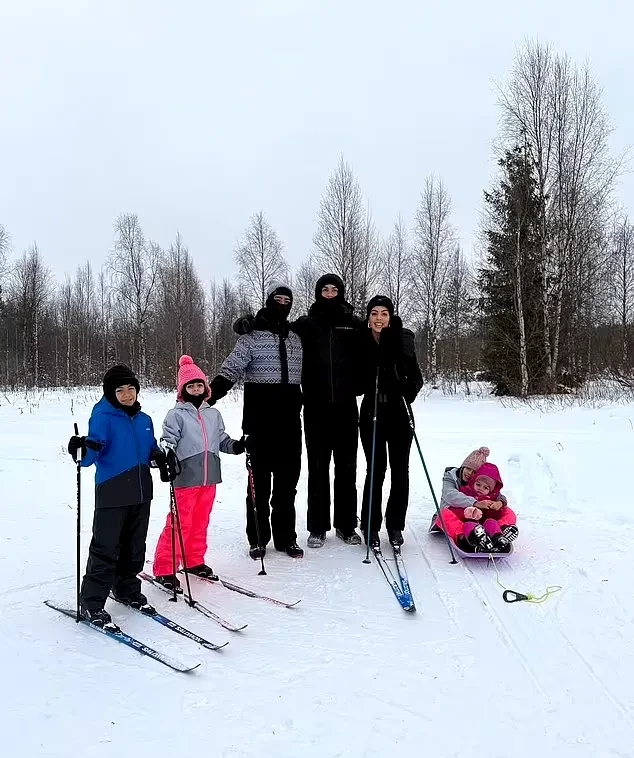 Лыжи и прорубь: Криштиану Роналду и Джорджина Родригес с детьми отдыхают в Финляндии