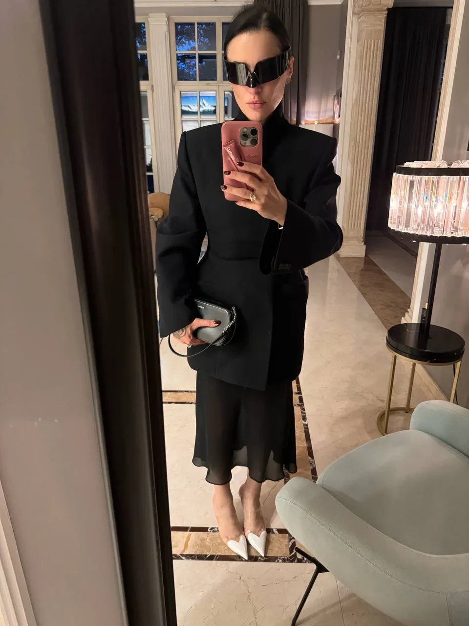 Анастасия Ивлеева в этом году (после "голой" вечеринки) практически не появлялась на публике, но её предвыборный образ total black с "извинительной" водолазкой и в очках в стиле "офисной сирены" сложно не отметить.Анастасия Ивлеева/Фото: ivleeva360/Telegram