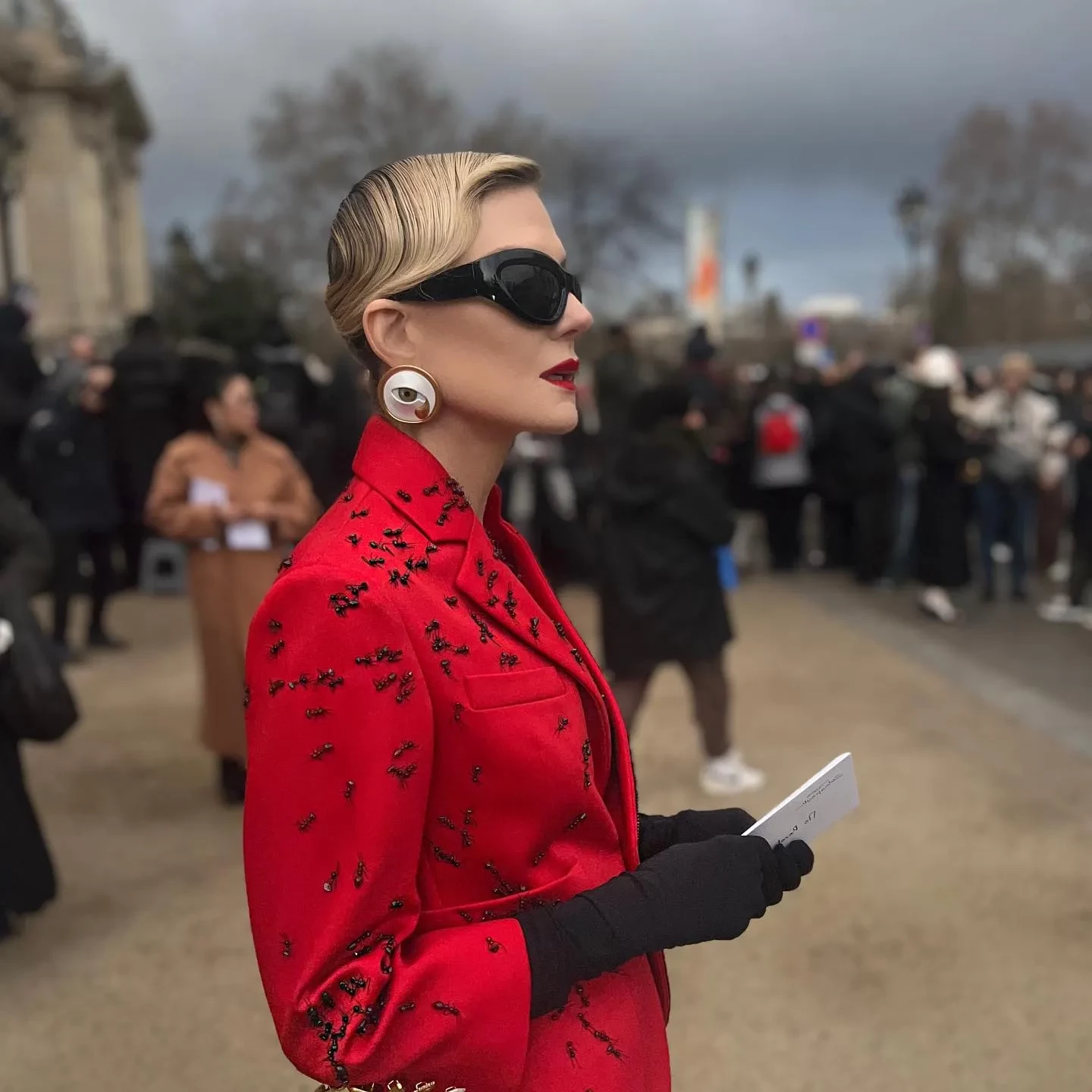 На счету иконы стиля Ренаты Литвиновой бесчисленное количество модных выходов в 2024 (и не только) году. Остановимся на образе в красном жакете, расшитом чёрными муравьями из бисера, в котором актриса и режиссёр появилась на кутюрном показе Schiaparelli в начале года в Париже.Рената Литвинова/Фото: renatalitvinovaofficiall/Instagram*Рената Литвинова/Фото: renatalitvinovaofficiall/Instagram*