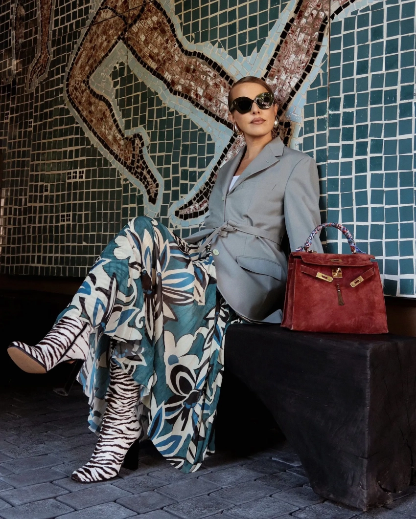 В стиле матери троих (из ста) детей Павла Дурова Ирины Болгар нет ничего необычного. Она носит жакеты в деловом стиле или гуляет по саду в розовом платье принцессы с рюшами.Ирина Болгар/Фото: extraterresta/Instagram*