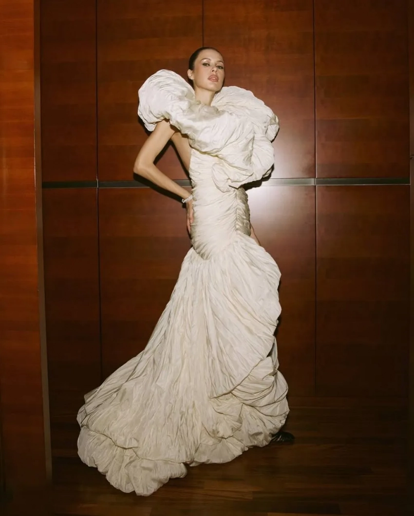 Ксения Шипилова в этом году выгуляла множество интересных образов, но самым ярким стал выход блогера на запуске журнала Tatler в Казахстане в платье свадебного бренда Murashka.Ксения Шипилова/Фото: shipilovaks/Instagram*