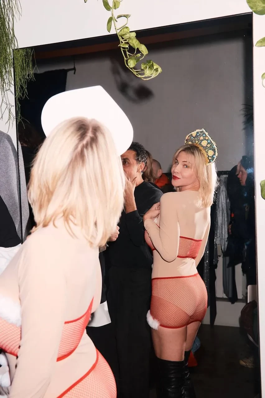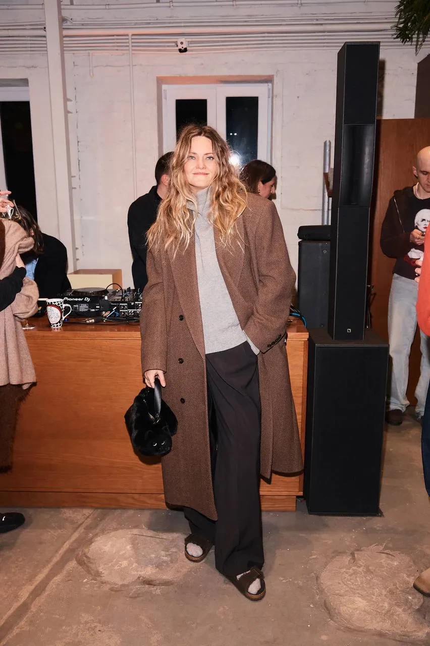 Гости танцевали под сеты Даши Аничкиной и пили шампанское. Ксения Собчак пришла в архивной куртке Walk of Shame и рубашке от Гоши Рубчинского, а Екатерина Мухина в декабрьскую погоду предпочла надеть биркенштоки с носками. Звездой вечера стала светская львица и актриса фильмов для взрослых Надя Сказка, которая пришла в меховой шляпе, но в разгар вечеринки осталась в боди и кокошнике.