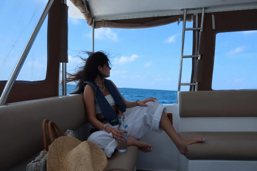 На фотографиях пара наслаждается отдыхом на пляже, катается на яхте и проводит время в ресторане отеля.