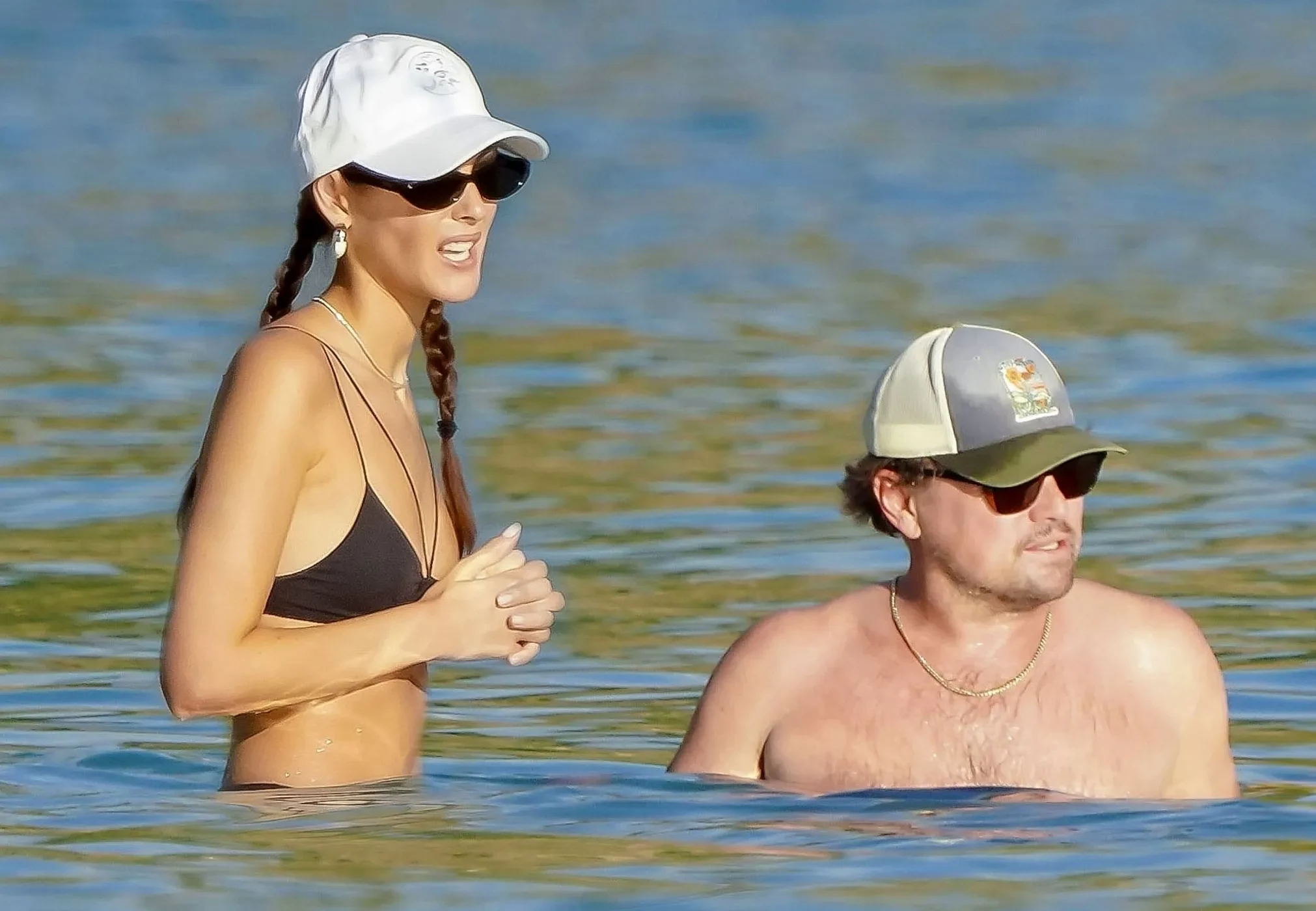 На снимках можно увидеть, как актёр и модель плавают в море, загорают, играют в пляжный теннис со своими друзьями. Виттория в тот день надела чёрное бикини, а волосы заплела в две косички. На ДиКаприо были синие шорты и кепка.