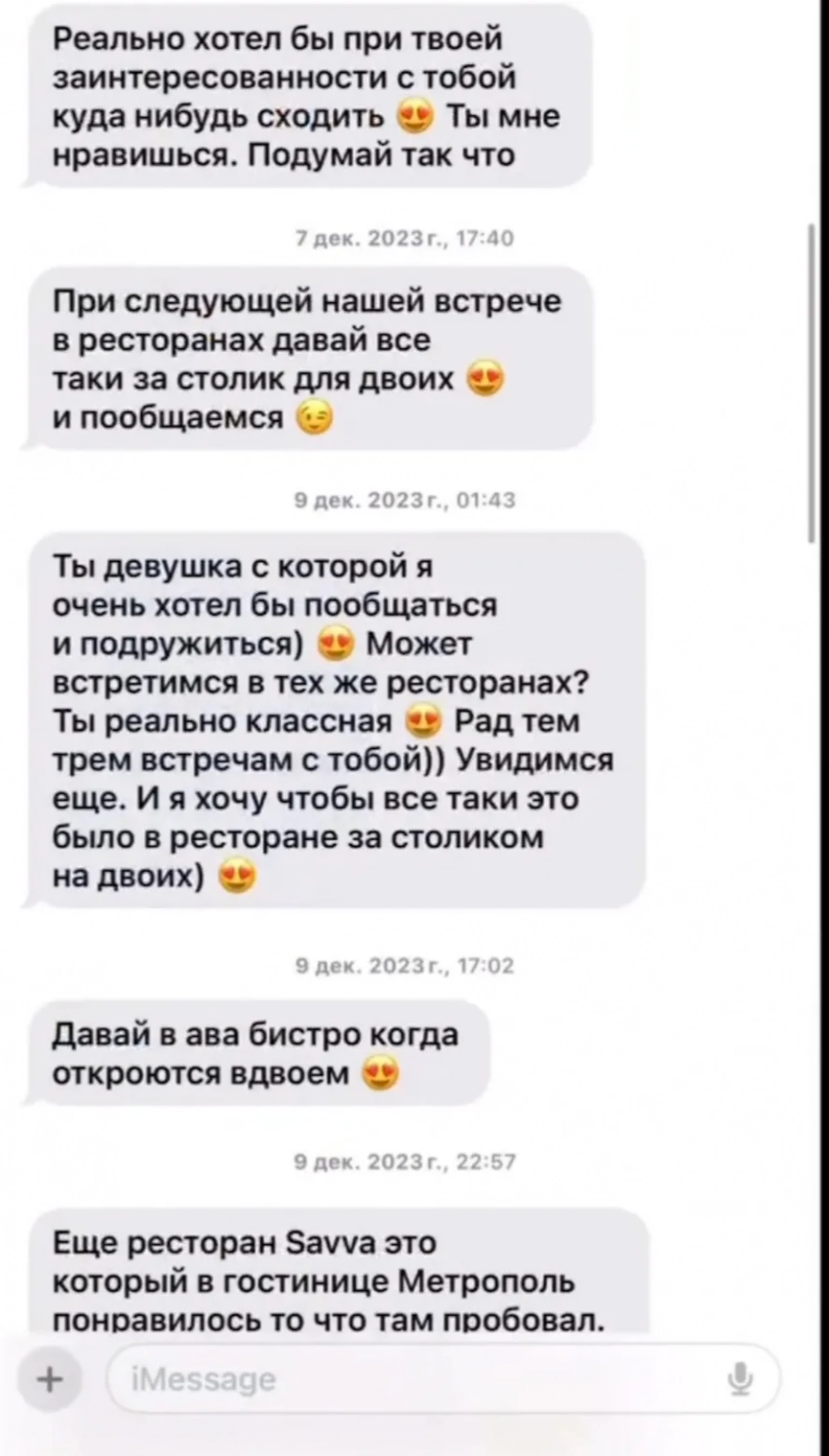 Анастасия Минаева/Фото: личный архивАнастасия записала видео, в котором подробно рассказала, как начала получать угрозы от 28-летнего мужчины по имени Олег. По словам модели, Олег нашел ее номер телефона вскоре после ее участия в “Мисс Россия”. На протяжении года он писал Минаевой сообщения, признавался ей в любви, звал ее на свидания в рестораны, и поначалу девушка принимала его за обычного навязчивого поклонника, происходящее даже казалось ей смешным. Однако вскоре поведение Олега и тон его сообщений изменились.