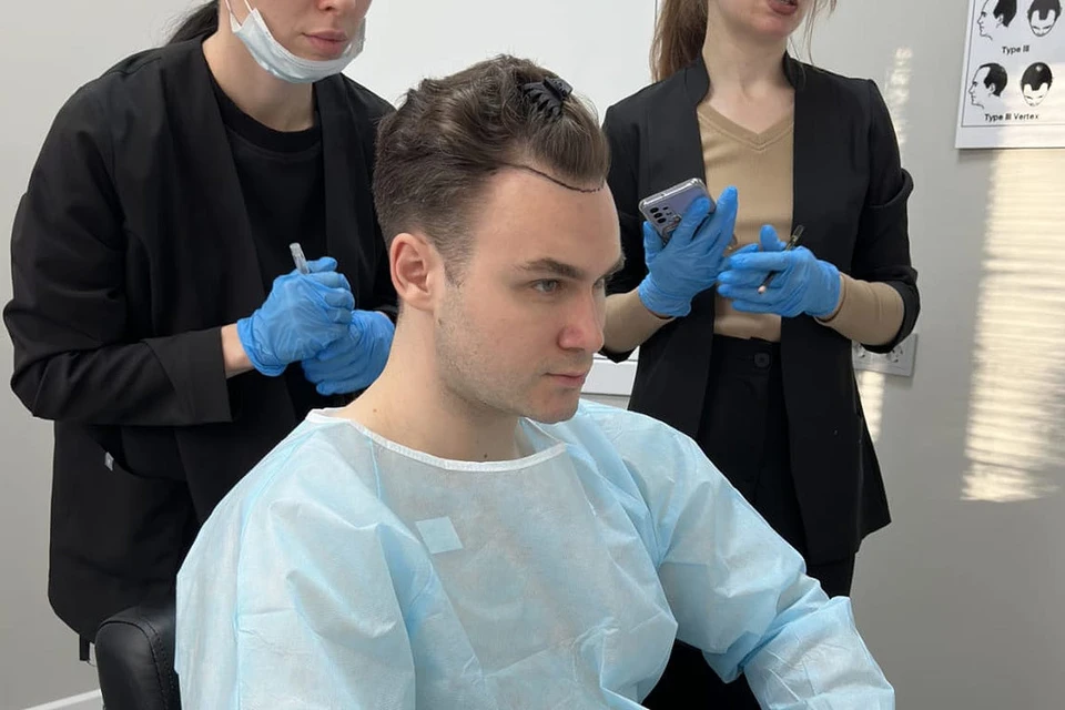 Процедура была сделана 9 января. Спустя практически месяц у Николая уже прорастают волосы. Соболев показал KP.RU фото «до» и «после», и результат, особенно в области висков, уже заметен.